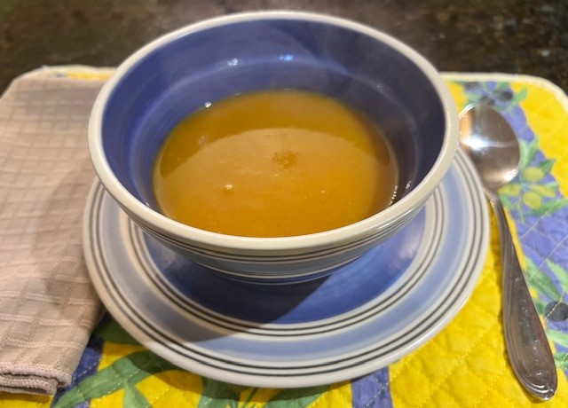 Here is a picture of just one of the delicious foods that we will be preparing: Sweet Potato Apple Soup!